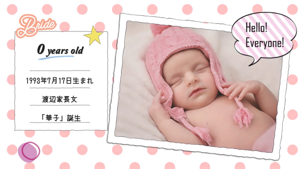 お二人の自己紹介という意味合いでそれぞれの幼少期の写真から現在に至るまでの写真や馴れ初めを写真を紹介する事が多くなっていて、披露宴中のイベントとしてとても人気です。