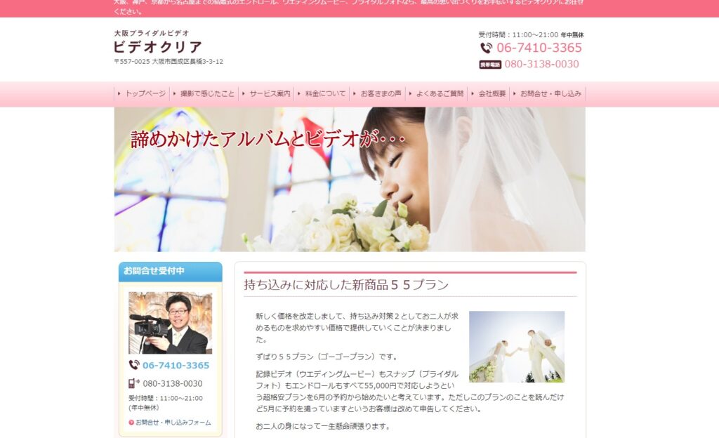 ビデオクリアは大阪市のブライダル撮影会社ですが、大阪駅から最寄り駅までの人数分の往復電車賃で出張してくれます。