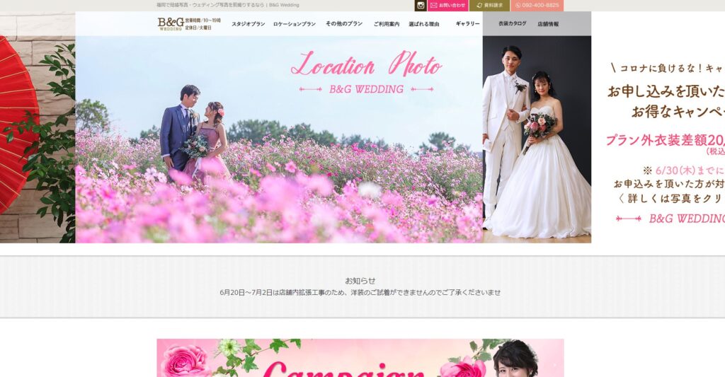 B&G Weddingは福岡市のブライダル撮影会社です。福岡店・北九州店・久留米店があります。