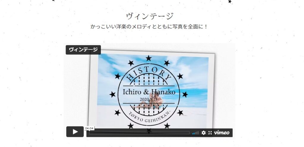 お2人の写真を入れ込んで、コメントを編集するだけでオリジナルのムービーが出来上がるので、「1からすべてを自作する自信がない…」という方におすすめです。