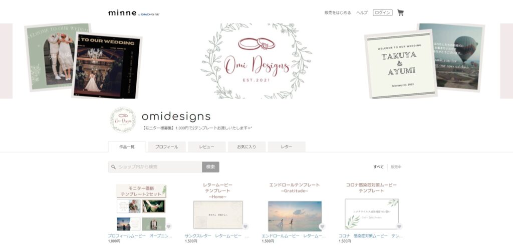 minneやCreema、ココナラなどのハンドメイド系のショップでもプロフィールムービーのテンプレートが販売されています。