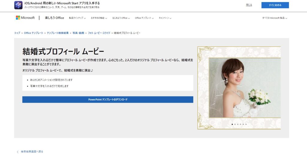 マイクロソフトはPowerPoint用にプロフィールムービーテンプレートを配布しています。