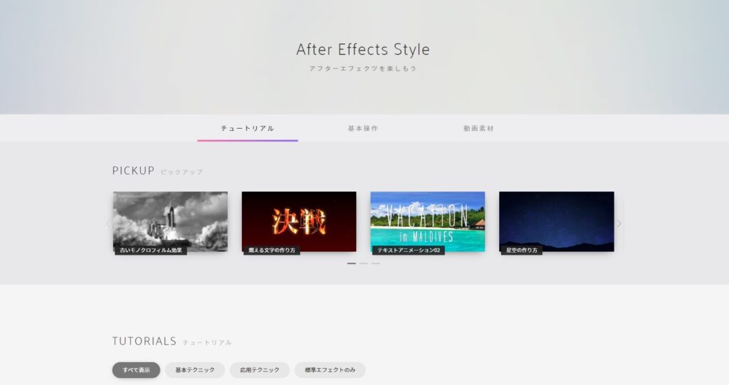 After Effects Styleは編集ソフトAfter Effectsの使い方を紹介したり、素材を配布したりしているサイトです。