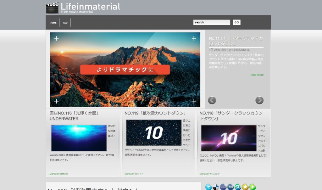 LifeinMaterialはさまざまな動画に使える素材配布サイト。