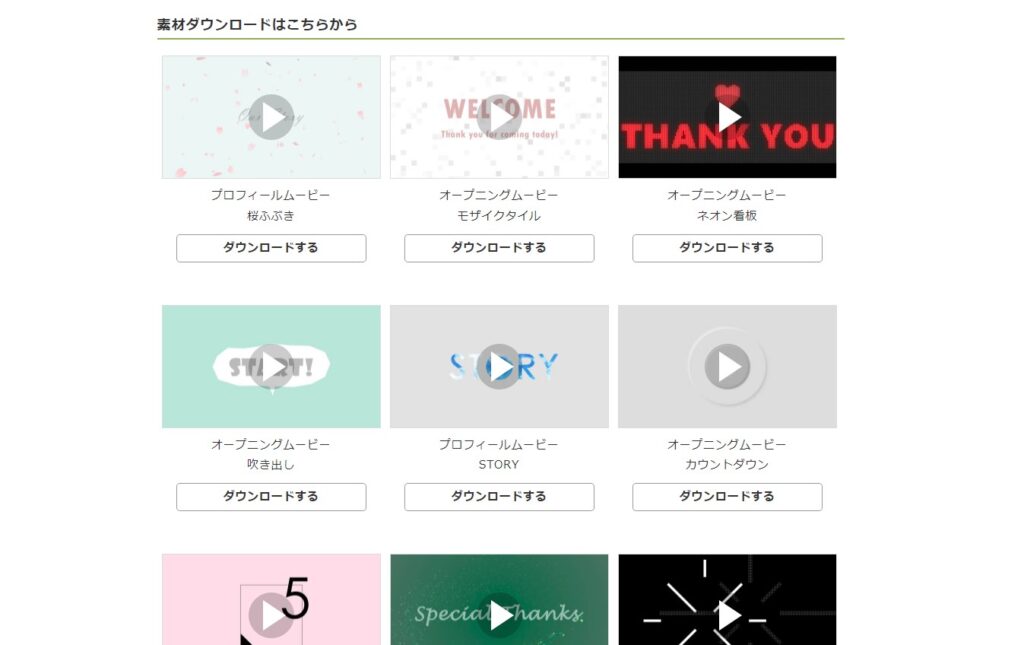 プロフィールムービーの素材とは、写真を表示させるときの背景や、最初に表示させるカウントダウンなどの数秒程度のアニメーションのことです。
