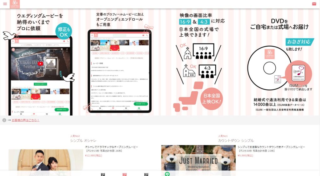 ※ISUM登録曲とは…市販の楽曲で、ISUMという団体にムービー制作業者が著作権の申請をすれば結婚式のムービーで使えるようになる楽曲です。