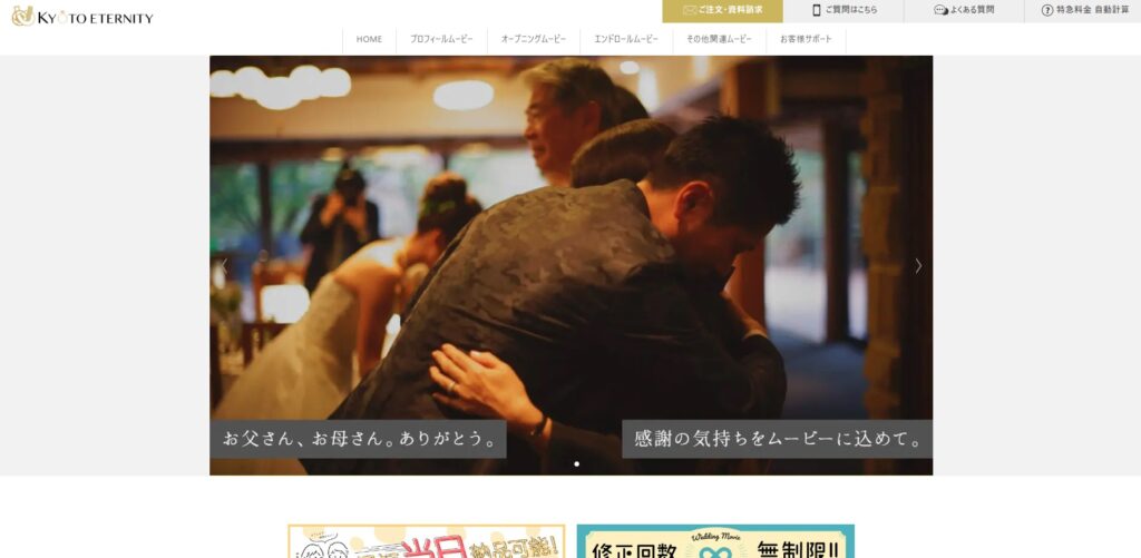 京都エタニティは14,300円(税込)のプロフィールムービーを2種類取り扱っています(全商品31種類)。