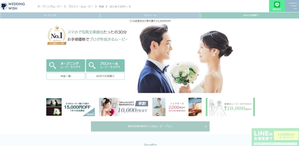 WEDDINGWISH は、18,500円(税込)の格安プロフィールムービーを7種類取り揃えています(全商品14種類)