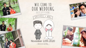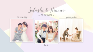 1年の春夏秋冬をイメージした背景にあわせて二人のお写真とゲストの名前、最後には感謝の気持ちがこもったメッセージを流します。
